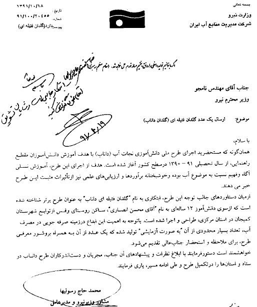 درخواست تشویق نوجوان وفسی از سوی وزیر نیرو