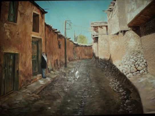 نقاشی که در تصویر می بینید توسط هنرمند جوان، خانم سمانه آهنگر کمیجانی از روی عکس واقعی کوچه ای در وفس، کشیده شده است. ابعاد واقعی تابلو 70*100 است و ایشان حدود پنج ماه زمان صرف کشیدن آن کرده است.