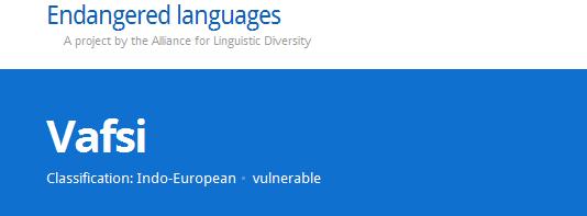 گویش وفسی که در طبقه بندی "هند و اروپایی/ هندی و ایرانی/ ایرانی/ ایرانی غربی/ شمالغربی ایران/ مرکزی" جای می گیرد با هجده هزار گویشور، یکی از زبان های در حال انقراض جهان به حساب می آید. صفحه زبان وفسی در وب سایت زبانهای در حال انقراض: vafsi
